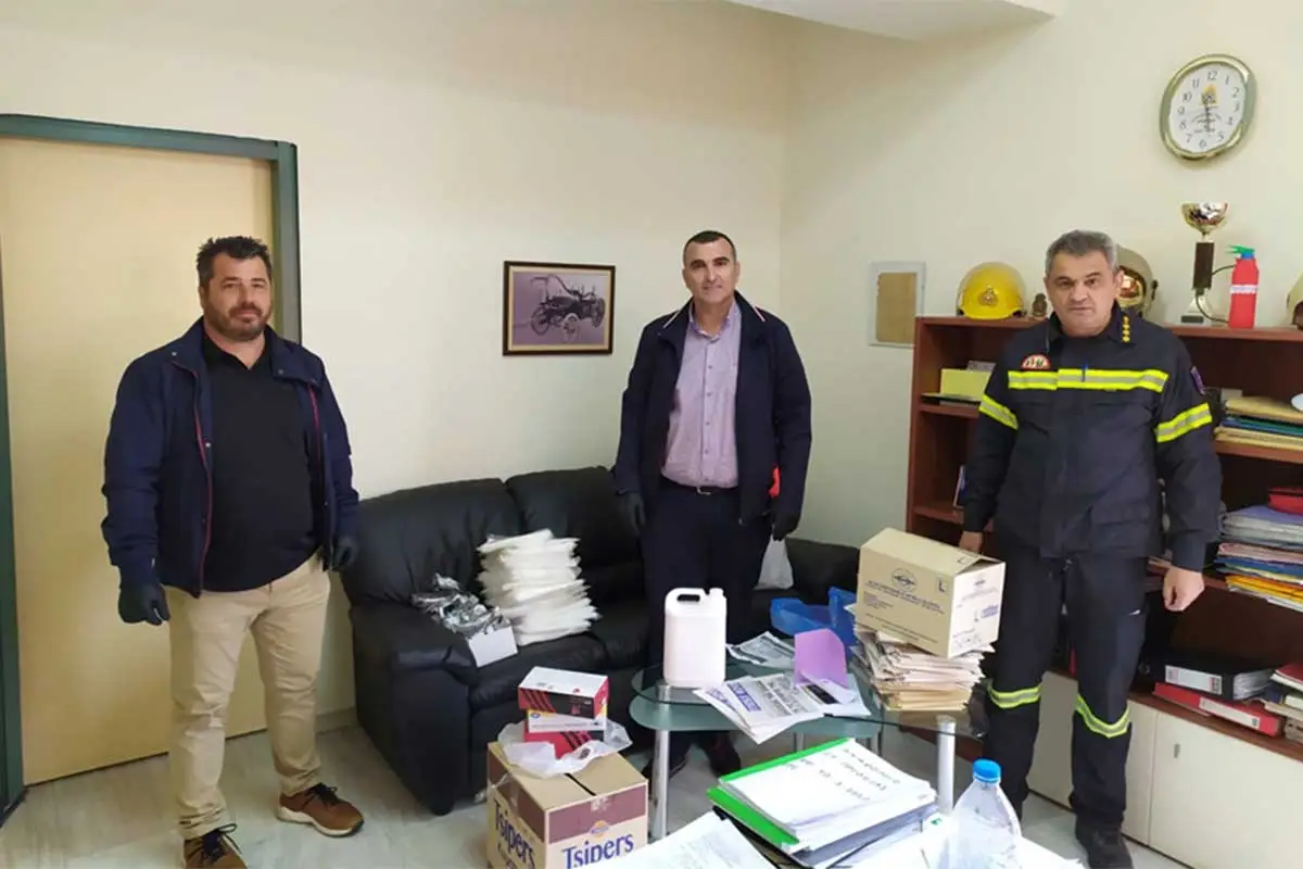 η οποία σε συνεργασία με την Τοπική Επιχείρηση  «Αφοί ΣΤΥΛΟΥ- IRRIGATION» χορήγησαν στην Υπηρεσία μας και κατ’ επέκταση τους συναδέλφους μας, 300 γάντια , 1 Δοχείο 5 lt αντισηπτικό , 19 υγειονομικές στολές προστασίας καθώς και 19 τεμ. πλαστικών γυαλιών προστασίας, προκειμένου να προστατευτούμε όσο το δυνατόν καλύτερα στην διαρκή προσπάθειά μας να προσφέρουμε τις Υπηρεσίες μας στους πολίτες, όπως πάντα άλλωστε, σ΄αυτή την πρωτόγνωρη κατάσταση που βιώνουμε όλοι μας,  λόγω του ιού COVID-19».