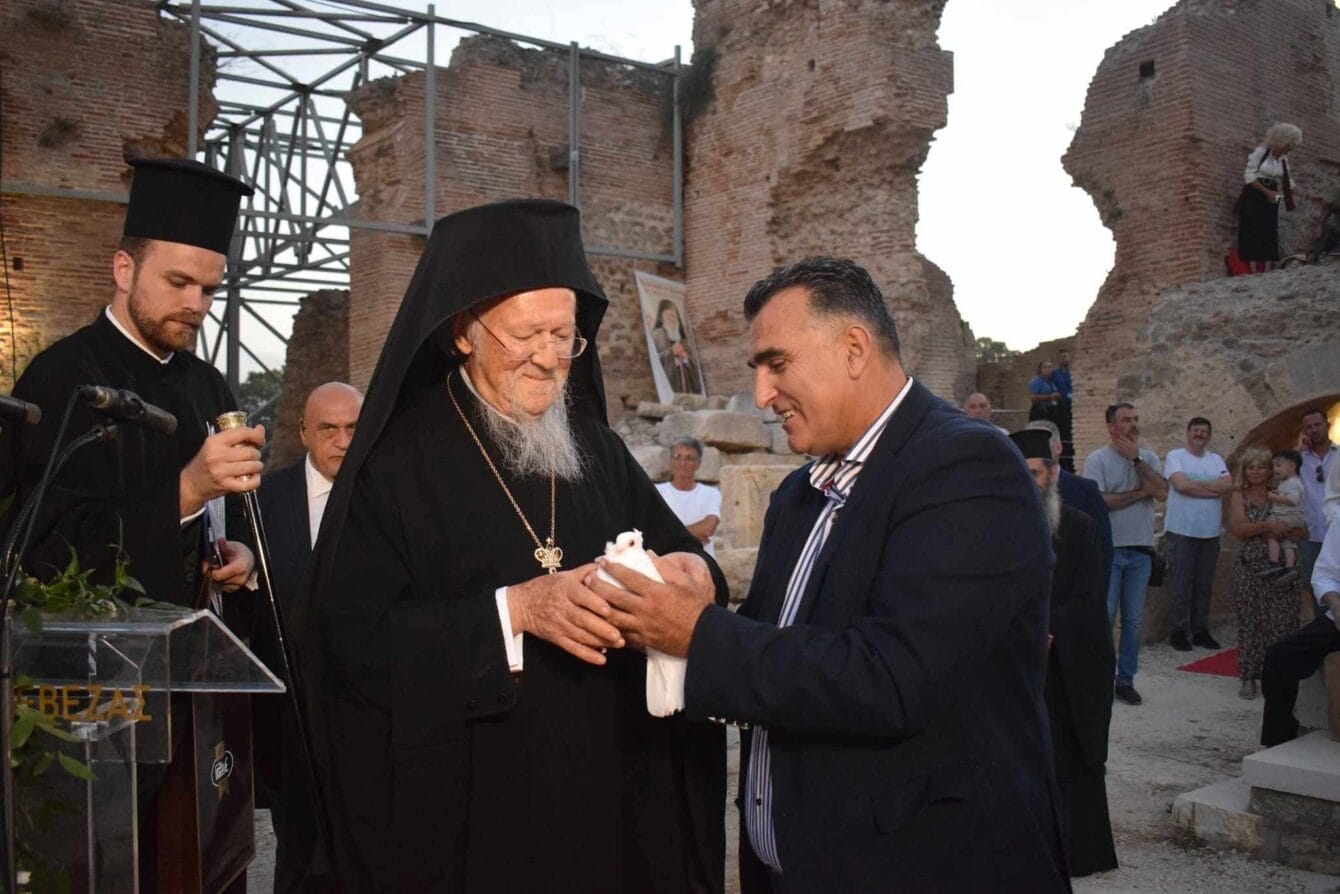 Ως επικεφαλής της δημοτικής παράταξης «Ανάπτυξη Τώρα» και μέλος της Εκτελεστικής Γραμματείας της Περιφερειακής Ένωσης Δήμων Ηπείρου, είχα την ιδιαίτερη τιμή να προσφέρω στον Παναγιώτατο, (στον ιστορικό χώρο του αρχαίου θεάτρου της Νικόπολης), ένα λευκό περιστέρι, σύμβολο ειρήνης, ενότητας και του Αγίου Πνεύματος.